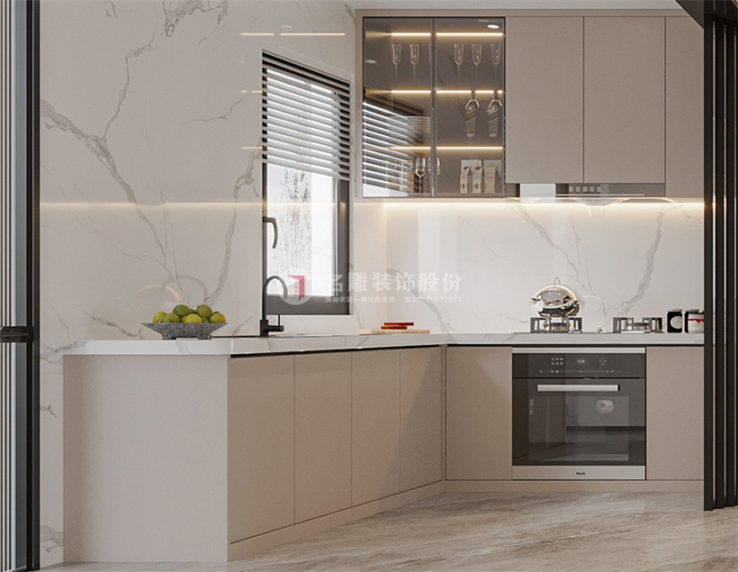 厨房橱柜做木制面板或者肤感膜类的柜门,指纹容易留在门上,油污指纹难清理,容易变形发黄,增加家务量,不实用。